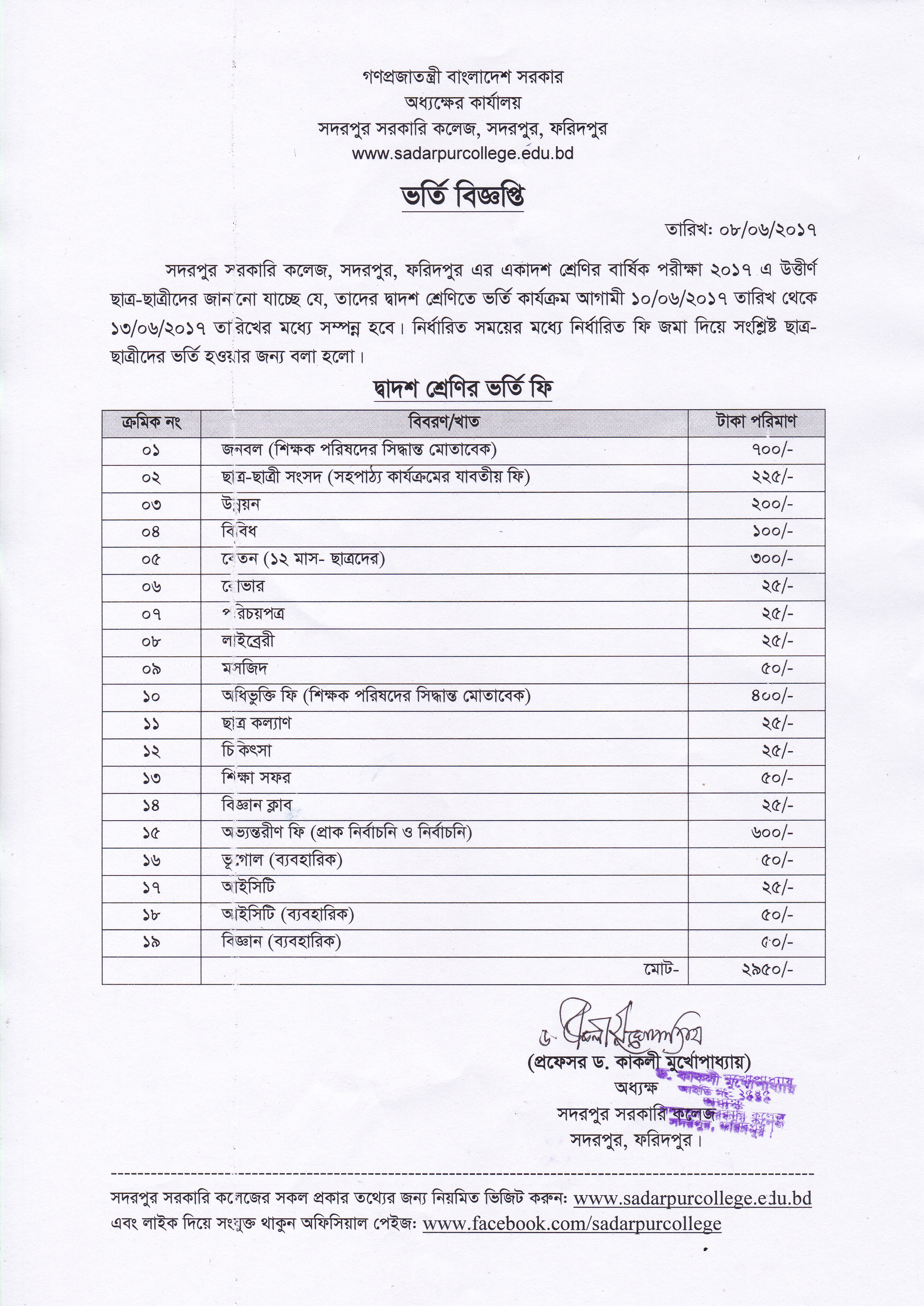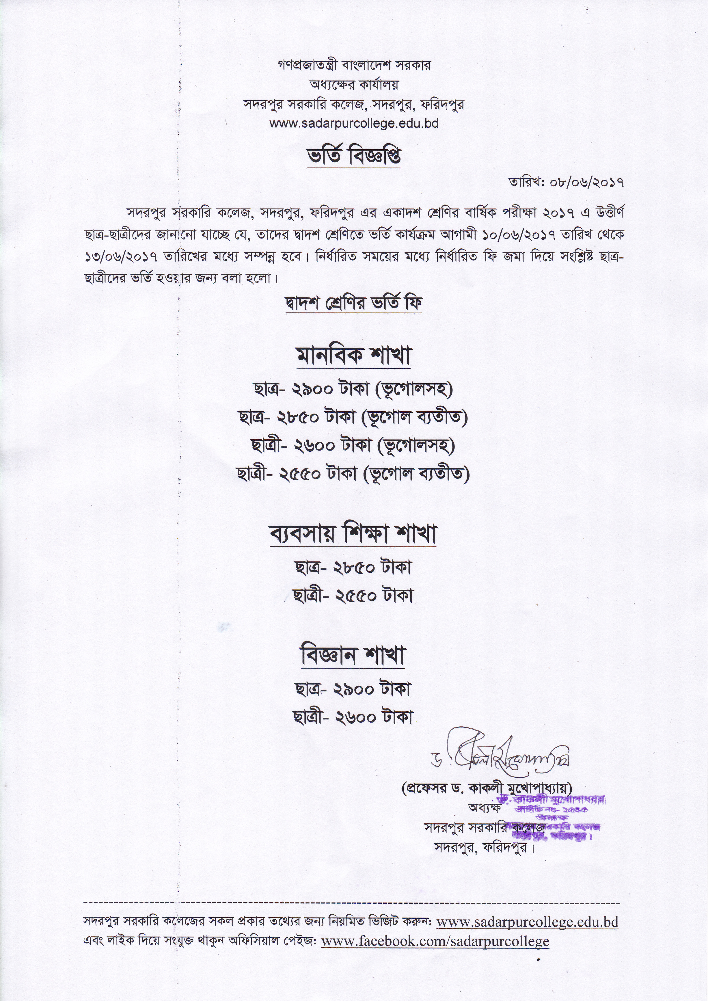 দ্বাদশ শ্রেণিতে ভর্তির বিজ্ঞপ্তি