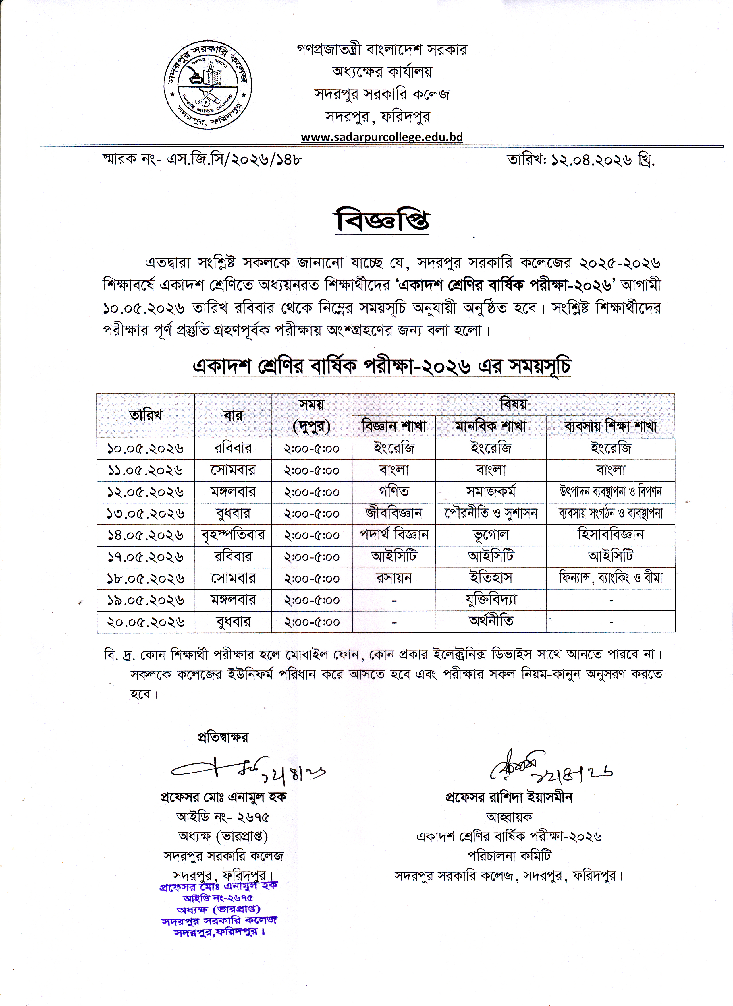 সদরপুর সরকারি কলেজ, সদরপুর, ফরিদপুর। ২য় বর্ষ অনার্স ২০২৪ এর বিভাগভিত্তিক ফলাফল (PDF) দেখতে ক্লিক করুন হিসাববিজ্ঞান: ACCOUNTING বাংলা: BENGALI অর্থনীতি: ECONOMICS ভূগোল ও পরিবেশ: GEOGRAPHY & [...]