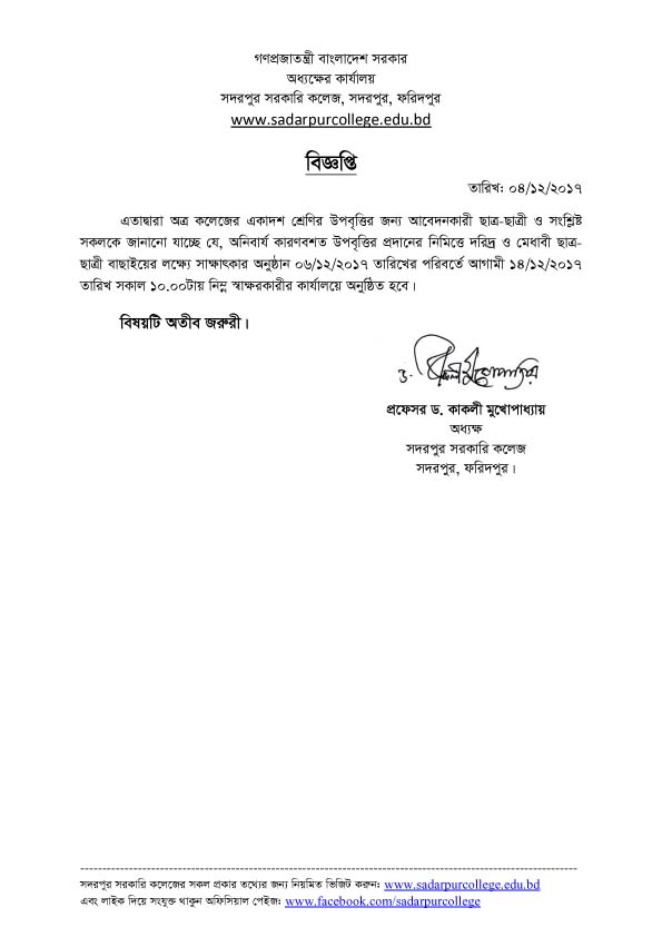 0By adminIn Notice Posted December 5, 2017একাদশ শ্রেণির উপবৃত্তির জন্য সাক্ষাৎকারের পরিবর্তিত তারিখ 14 ডিসেম্বর 2017Read More