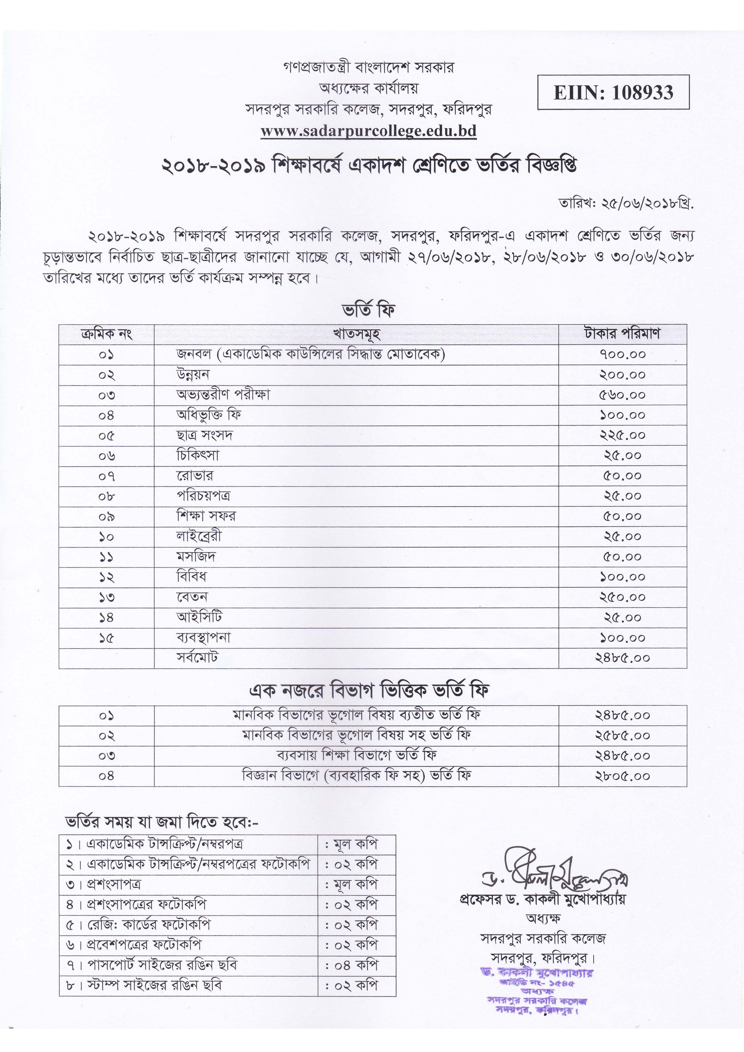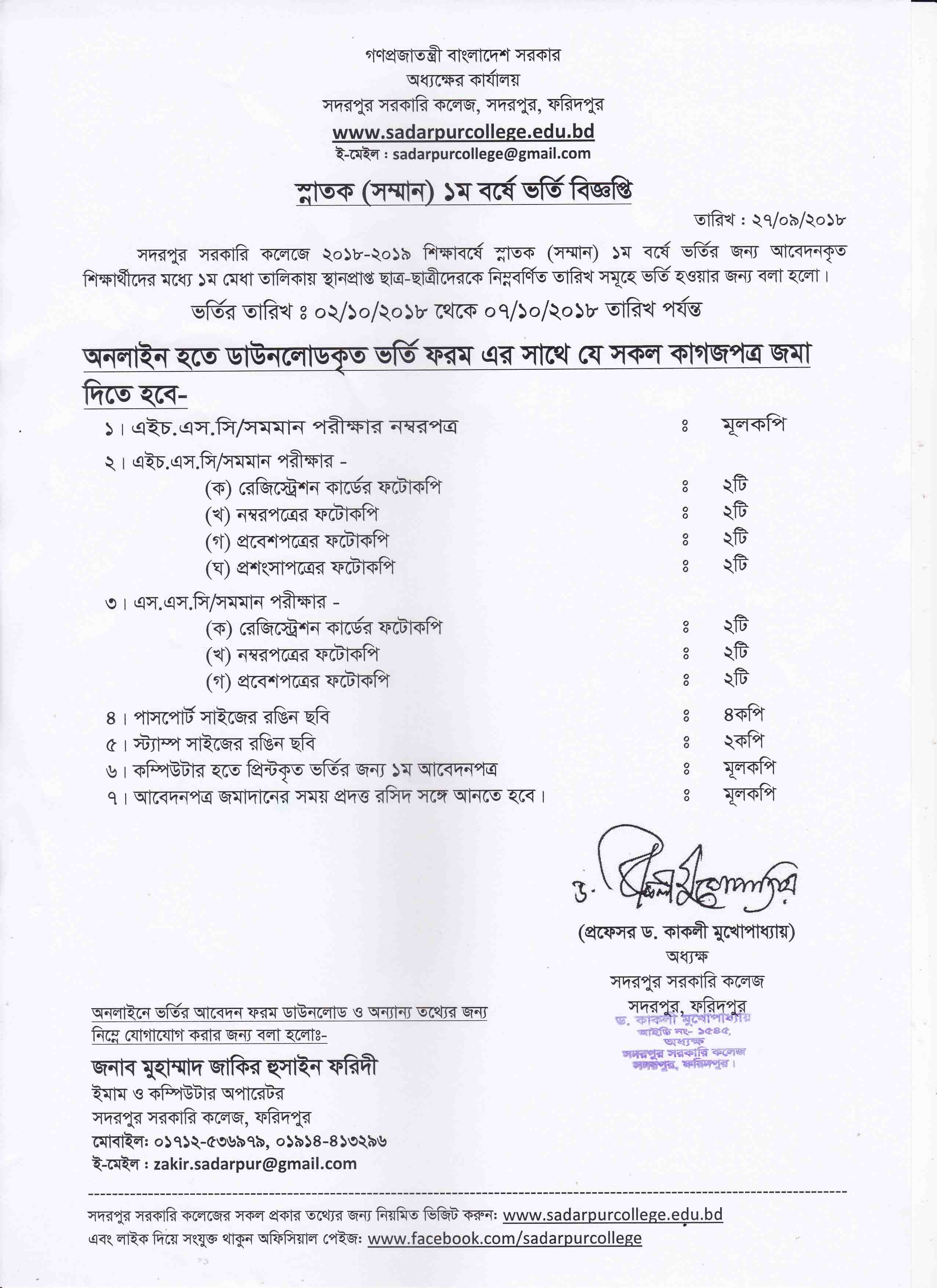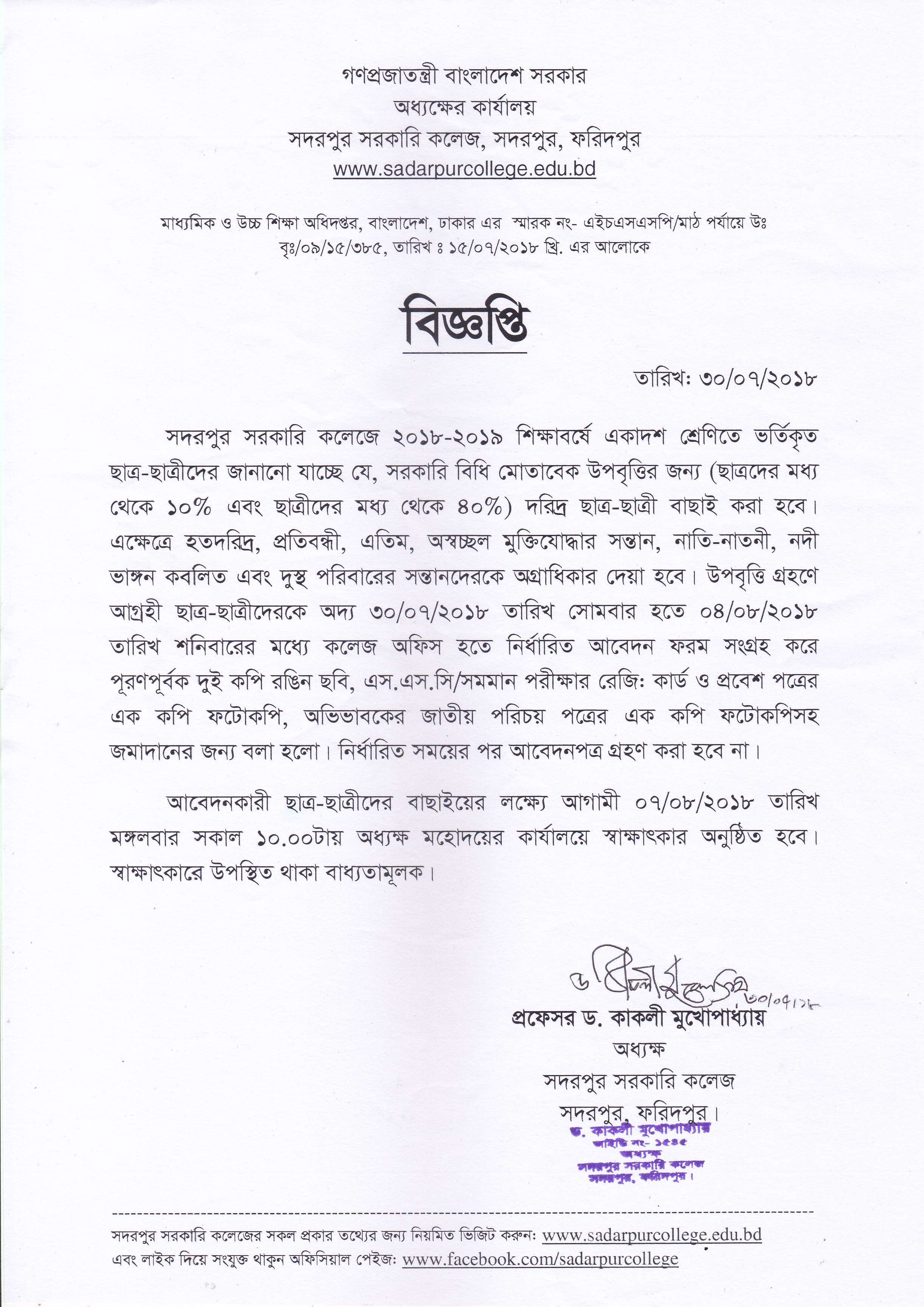 গণপ্রজাতন্ত্রী বাংলাদেশ সরকার অধ্যক্ষের কার্যালয় সদরপুর সরকারি কলেজ, সদরপুর, ফরিদপুর www.sadarpurcollege.edu.bd বিজ্ঞপ্তি তারিখ: ০১/০৭/২০১৮ খ্রি. সদরপুর সরকারি কলেজের ২০১৮-২০১৯ শিক্ষাবর্ষে [...]
