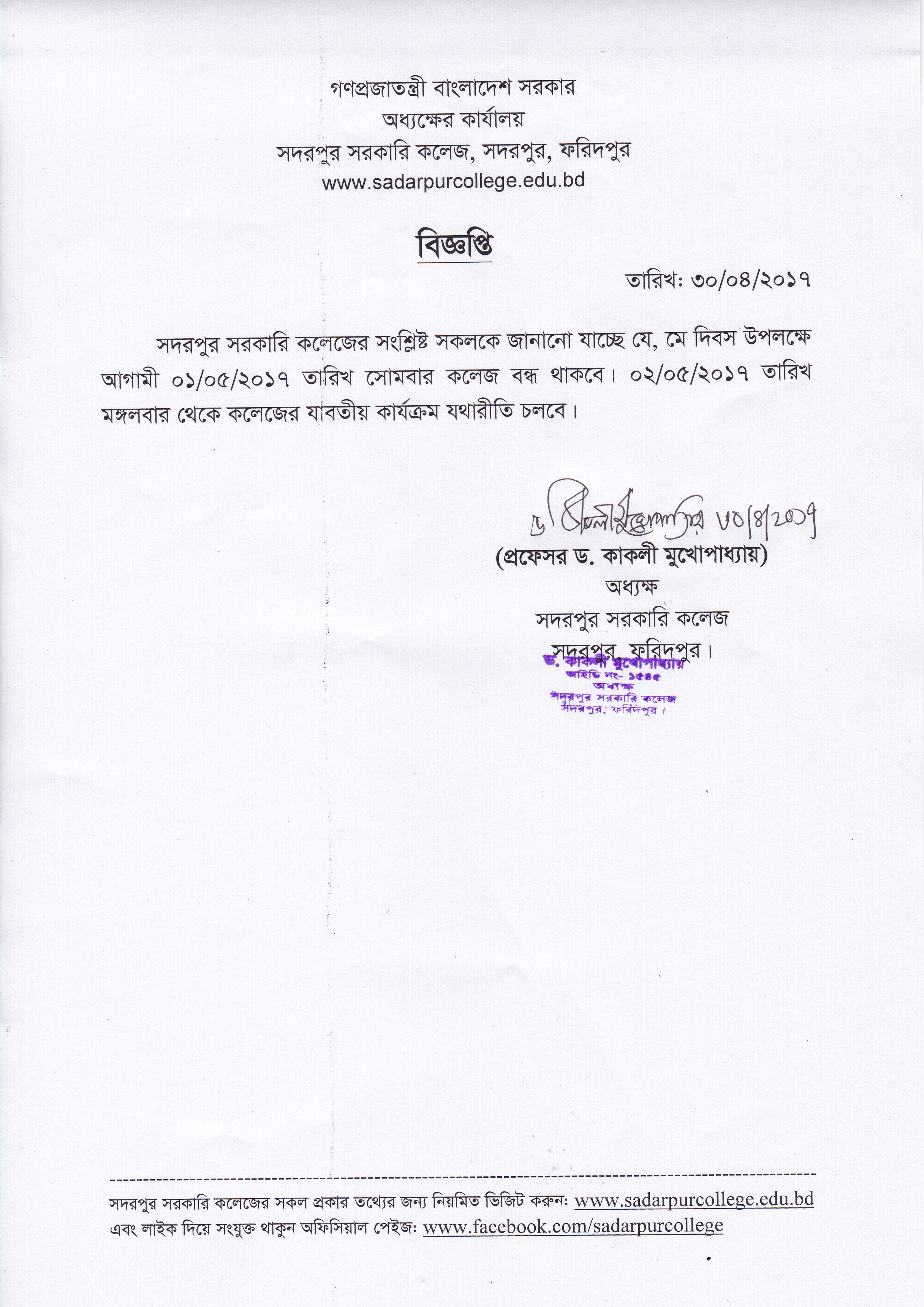 0By adminIn Notice Posted May 8, 2017জনাব ওয়াদুদ খান, প্রভাষক, ইংরেজি এর আন্তর্জাতিক পাসপোর্টের বিভাগীয় অনাপত্তি প্রসঙ্গেRead More
