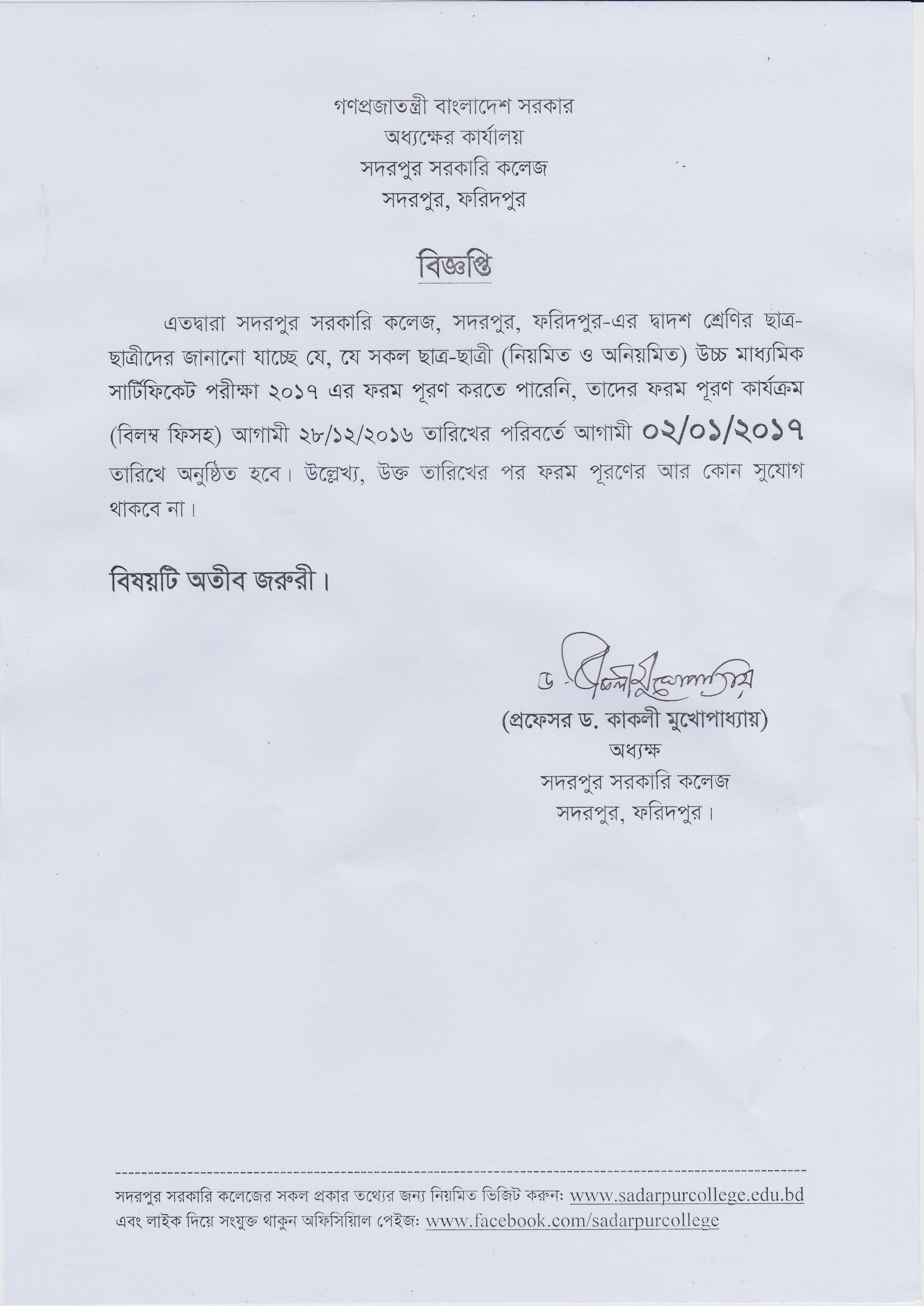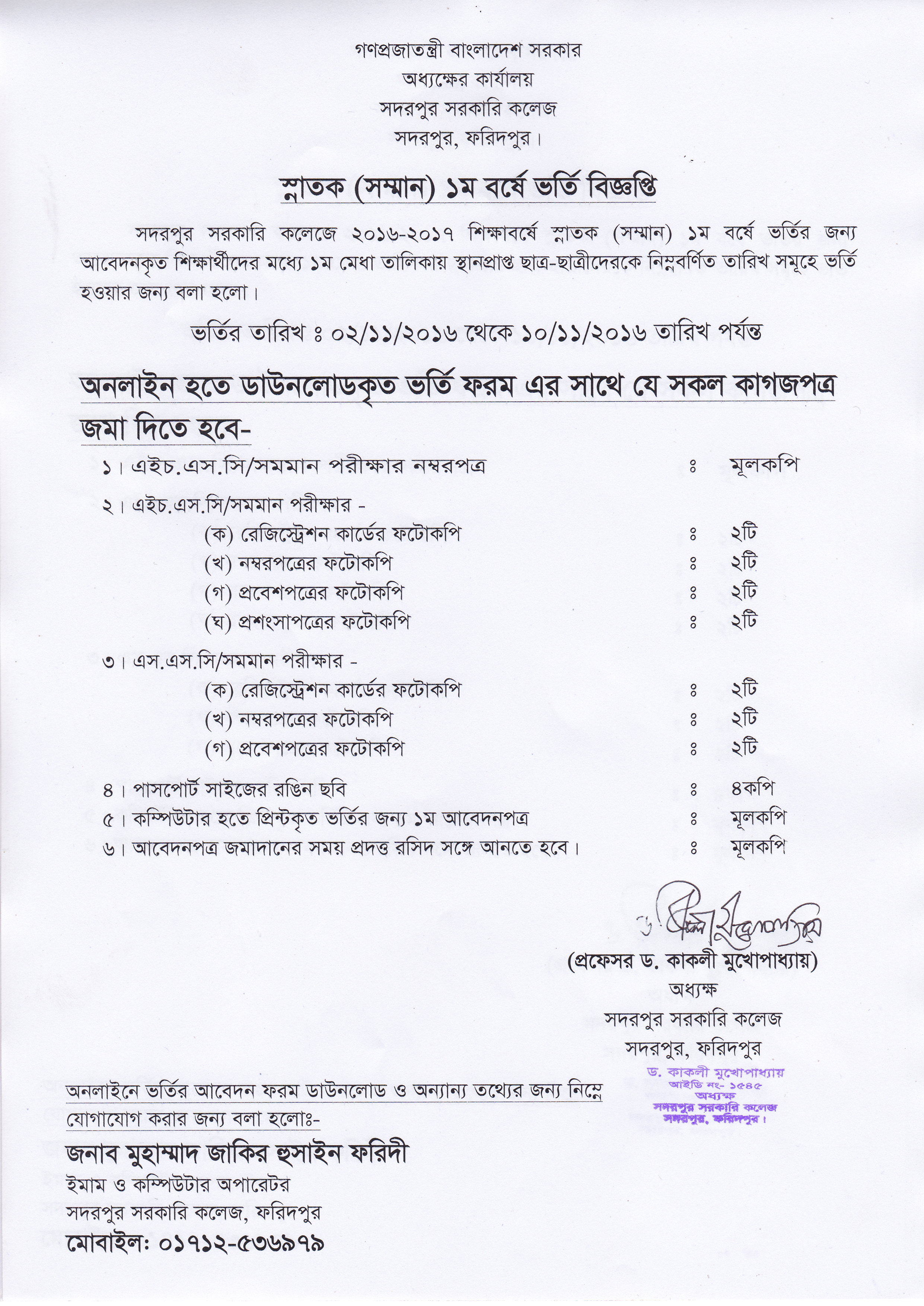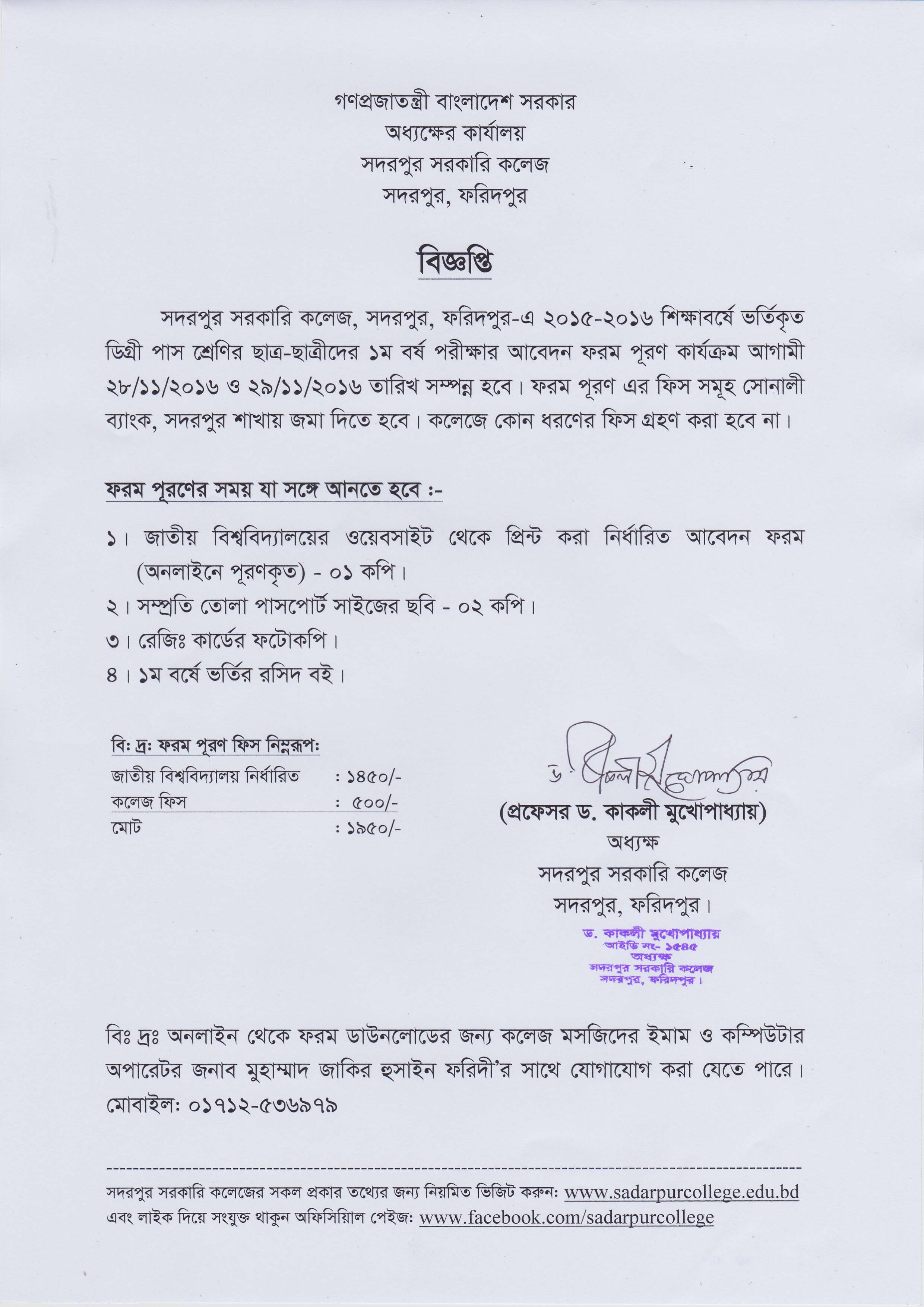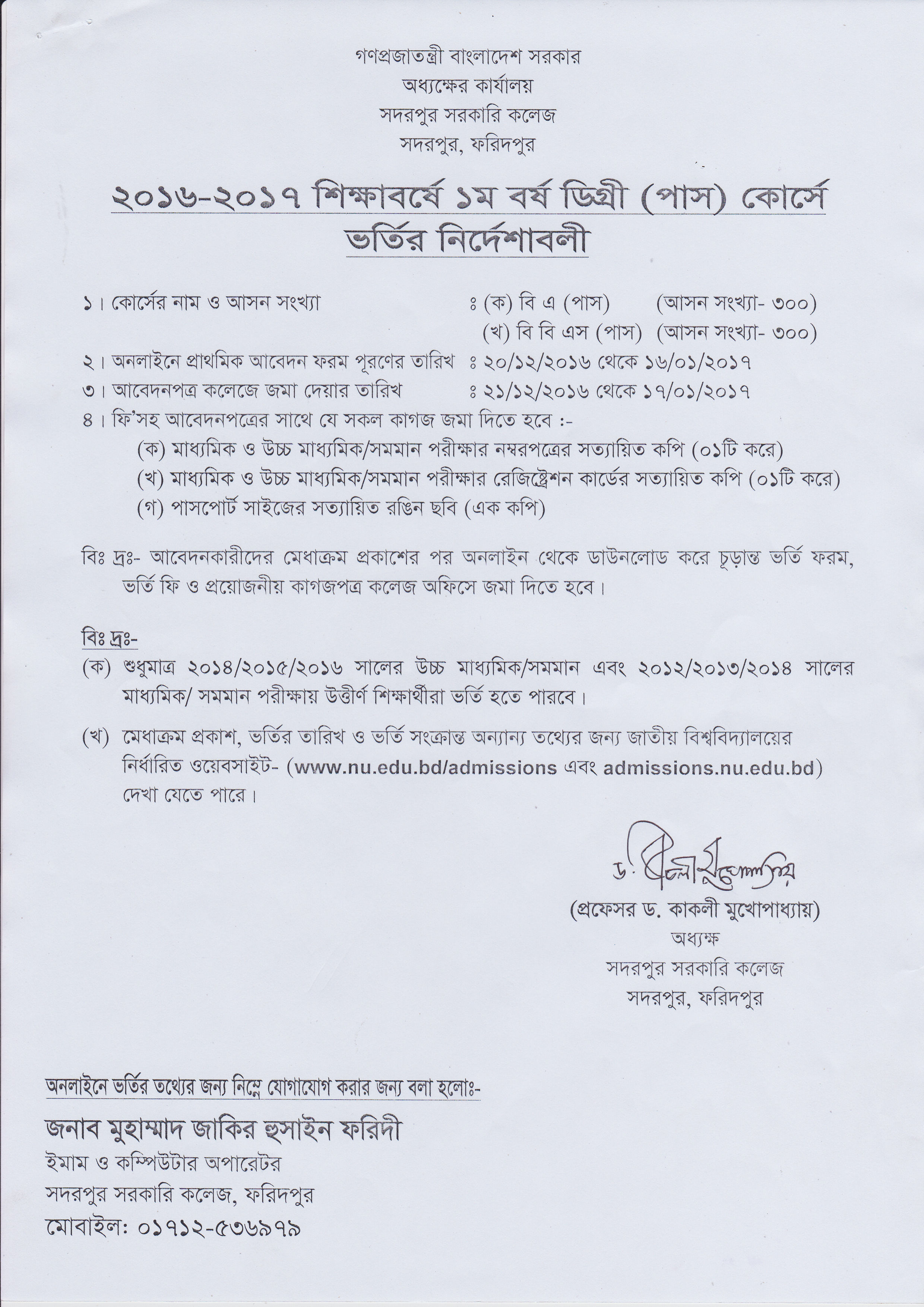 সংশ্লিষ্ট সকলের অবগতির জন্য জানানো যাচ্ছে যে, ২০১৫ সালের ডিগ্রী পাস (পুরাতন সিলেবাস, ১ম বর্ষ, ২য় বর্ষ ও ৩য় বর্ষ) পরীক্ষার আবেদন ফরমপূরণ কার্যক্রম আগামী ০৯/০১/২০১৭ এবং ১০/০১/২০১৭ তারিখে সম্পন্ন [...]