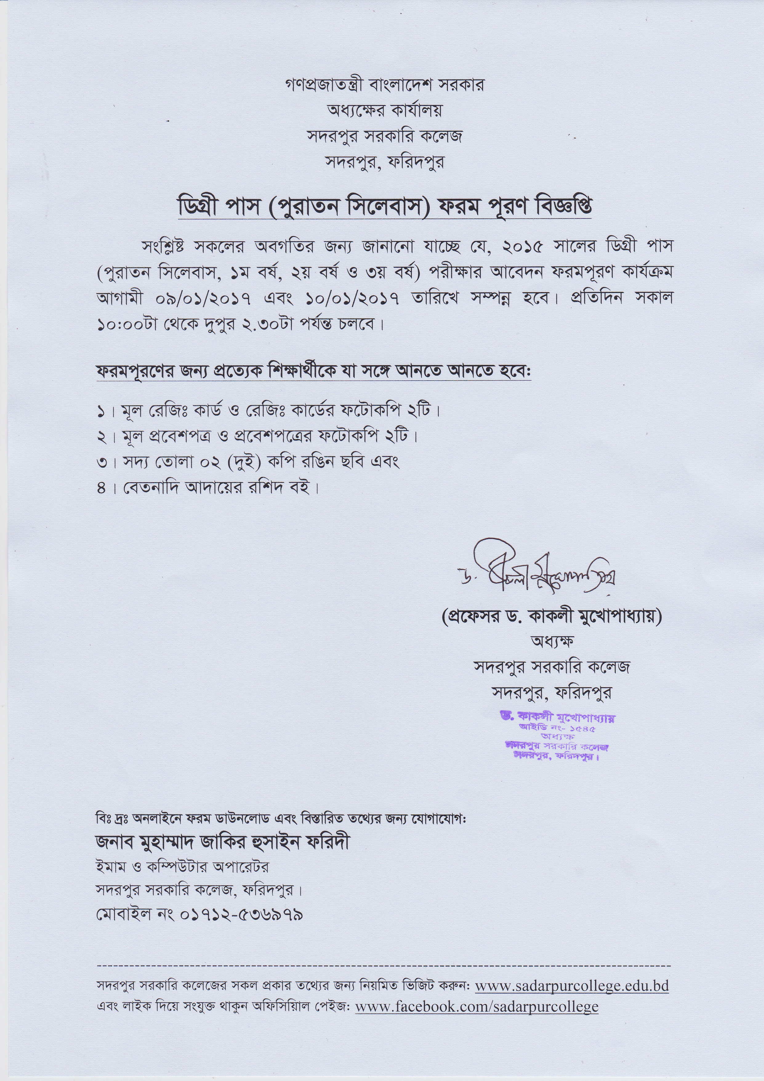 In Notice Posted ডিগ্রী পাস (পুরাতন সিলেবাস) ফরম পূরণ বিজ্ঞপ্তি