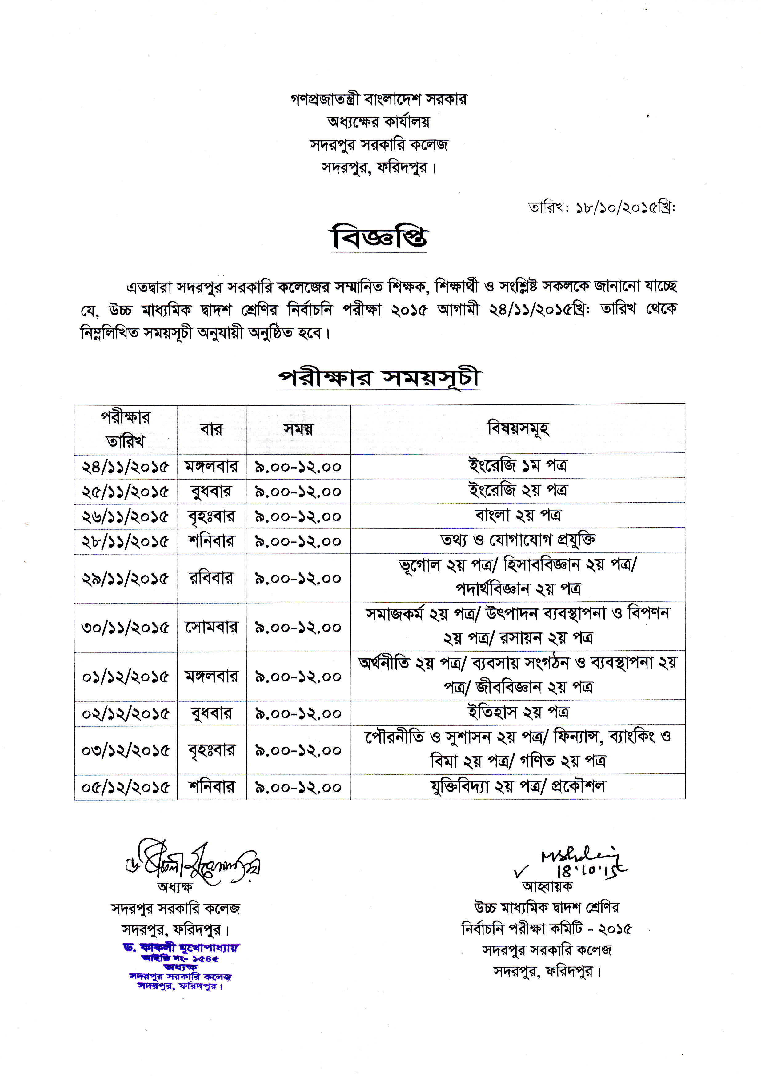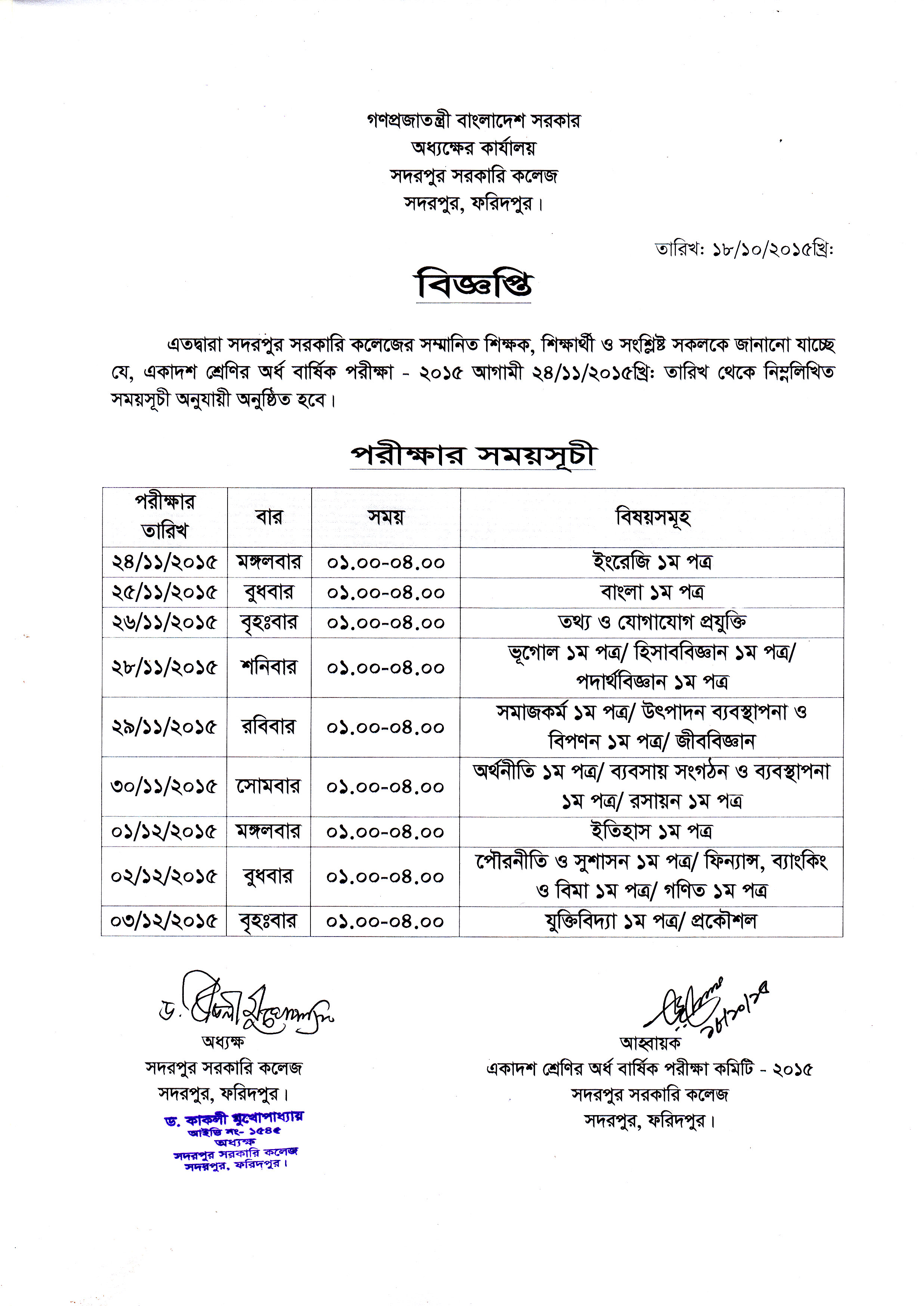 0By adminIn Notice Posted October 18, 2015একাদশ শ্রেণির অর্ধ বার্ষিক পরীক্ষা – ২০১৫ এর সময়সূচিRead More