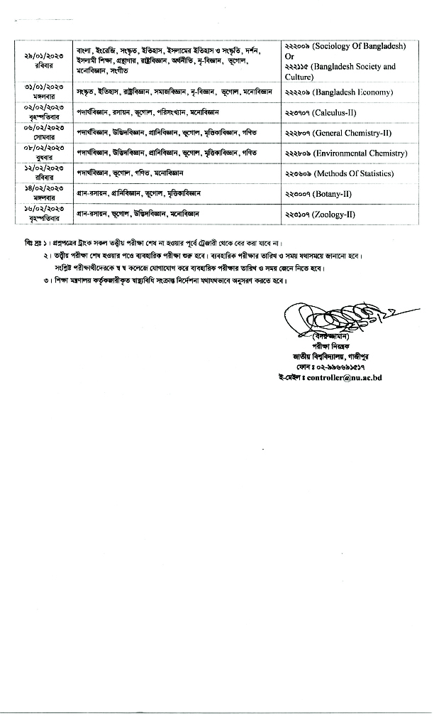 অনার্স ২য় বর্ষ পরীক্ষা – ২০২১ এর সময়সূচী। আরম্ভ- 02/01/2023