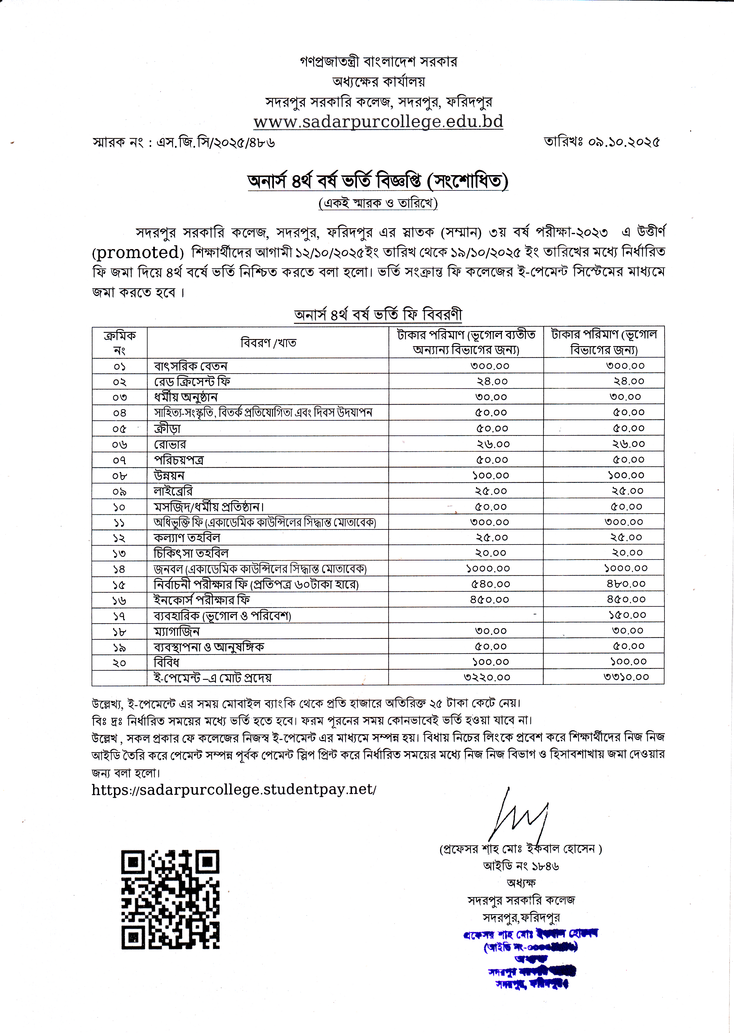সদরপুর সরকারি কলেজের এইচএসসি পরীক্ষা-২০২৫ এর ফলাফল (PDF)